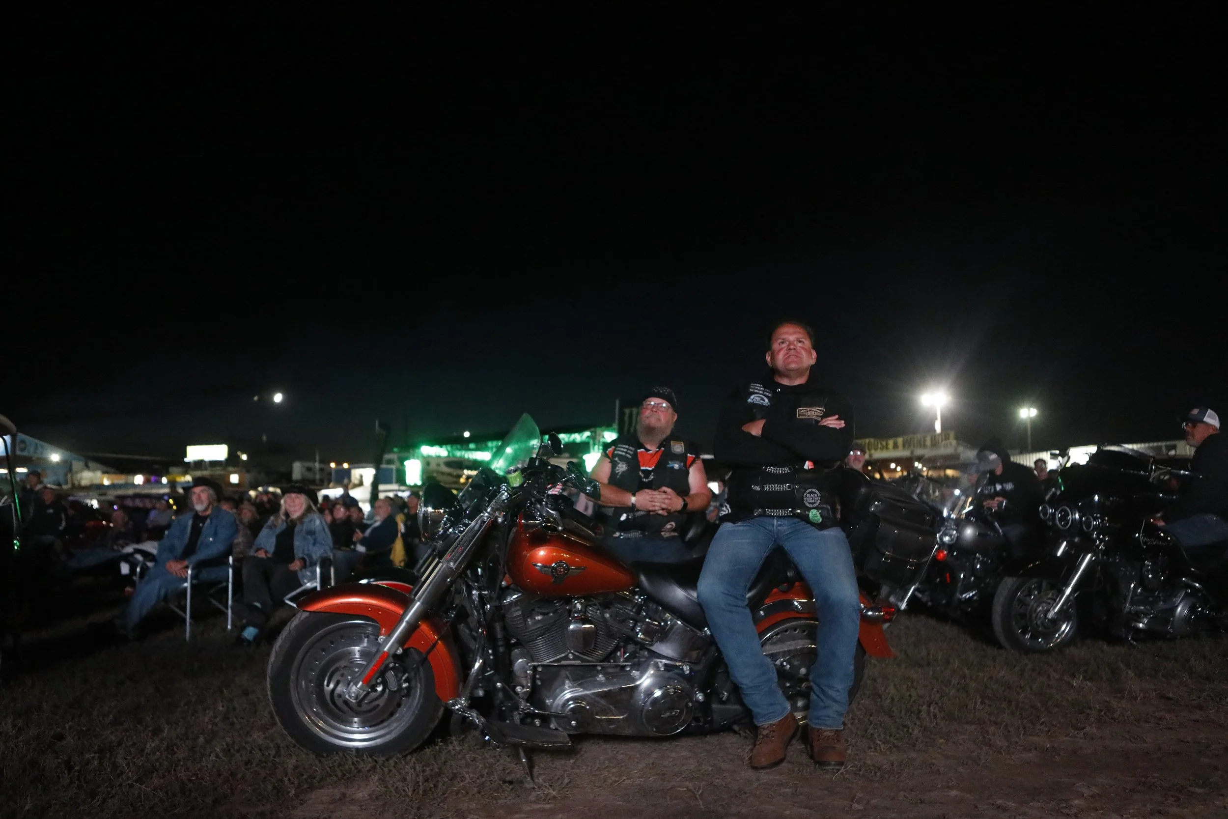 Motorcyclists listen to the band Styx perform on Tuesday, Aug. 8, 2023, during the Styx and REO Speedwagon concert at the Buffalo Chip during the 83rd City of Sturgis Motorcycle Rally in Sturgis, S.D. The Buffalo Chip held nightly concerts during the ten day rally.